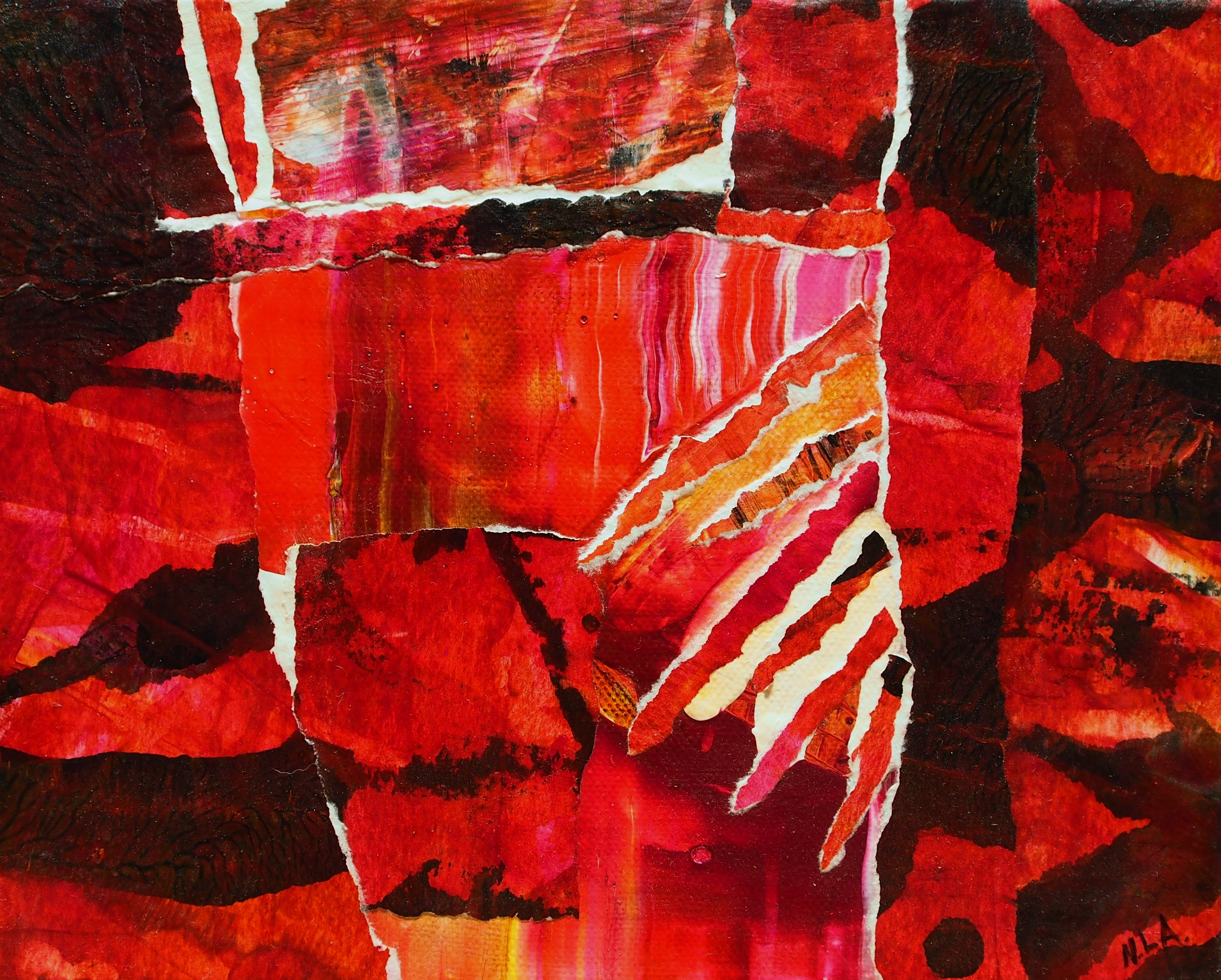 Gatineau rock wall | acrylic collage on canvas | 8" x !0"